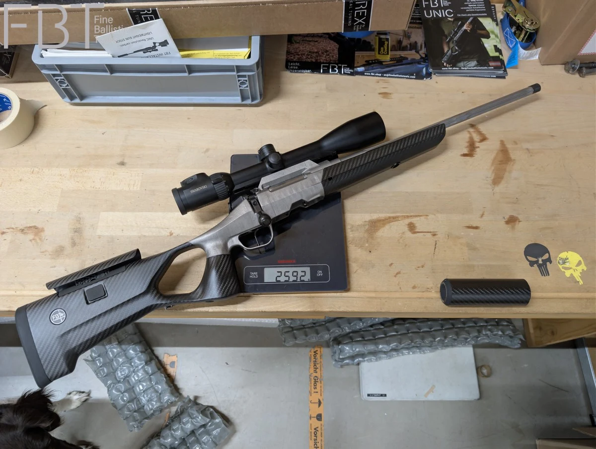 - Die Blaser BBF 95 Modifikation: Ein besonderes Exponat ist die Blaser Bockbüchsflinte 95, die wir mit einem FBT Carbonschaft und einem INCA Titanschalldämpfer veredelt haben. Eine klassische Waffe, die durch modernes Zubehör eine völlig neue Führigkeit und Präzision erhält.